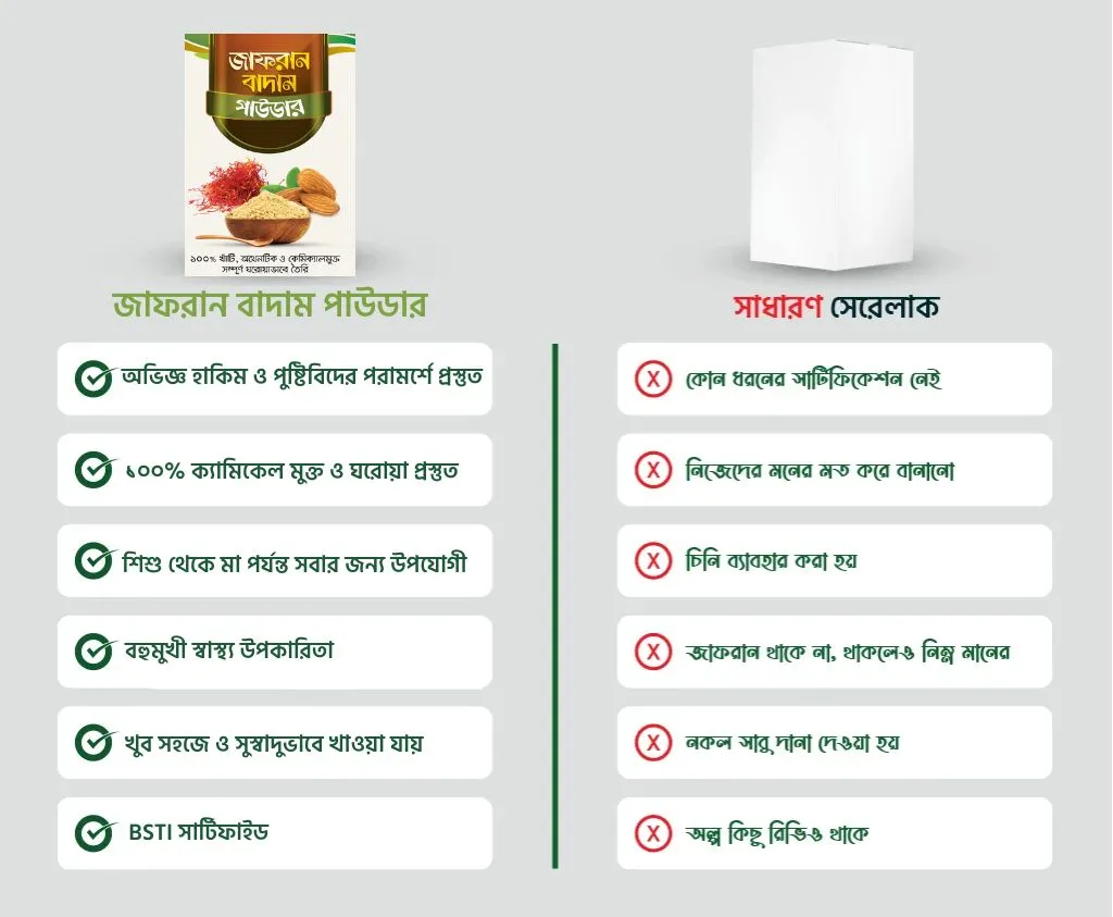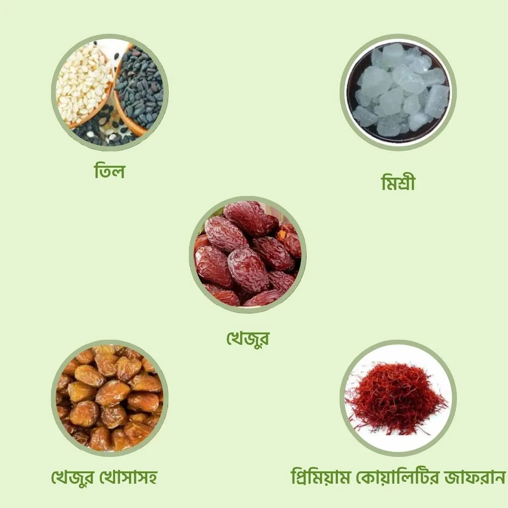 ১০টি প্রাকৃতিক উপাদানের পুষ্টিকর মিশ্রণ—কাজুবাদাম, খেজুর, পেস্তা ও প্রিমিয়াম জাফরানে গড়া বিশ্বস্ত ঘরোয়া খাবার